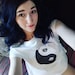 The mask, made of hand-molded Worbla, is lightly padded inside and lined with black felt. Lightweight and very comfortable to wear, it has elastic straps for lacing.